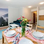 Apartamenty Sun & Snow Karpatia has a balcony and a terrace, and features modern comforts like air conditioning, as well as a TV and Wi-Fi. A bathroom is fitted with a bath and a shower, along with hairdryers and bath sheets, which are also provided.